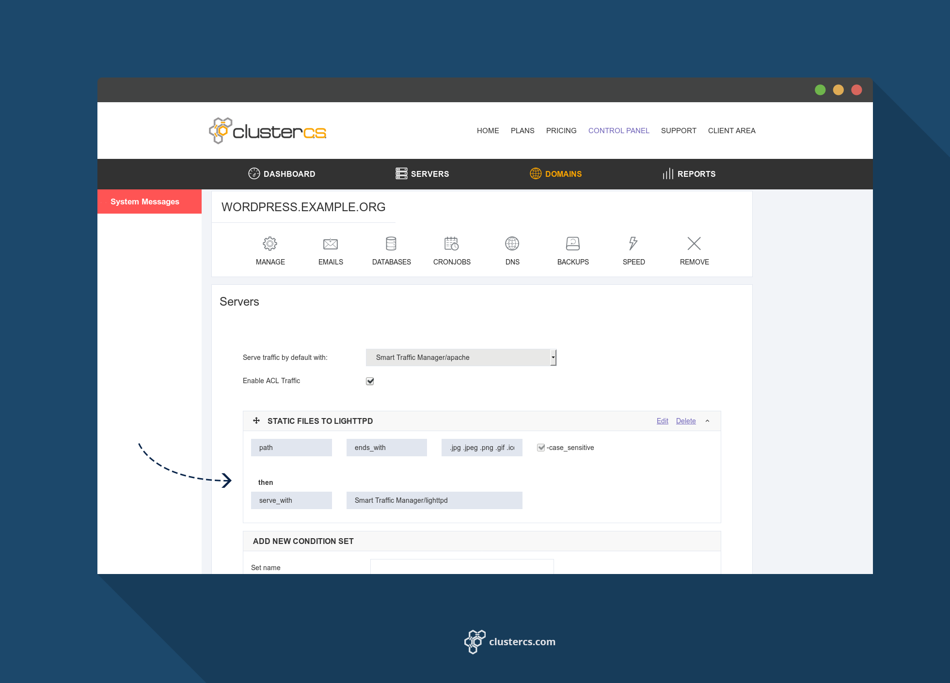 I will show how you in this post how you can achieve the most important boost of speed by spending only a few minutes defining traffic rules for your WordPress domain in the ClusterCS web hosting panel. Whether you’re a website owner, developer or sysadmin, I believe reading the few lines bellow will be valuable.